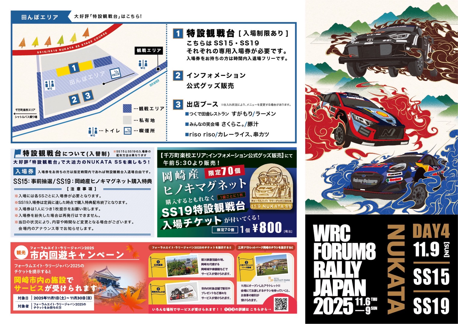 フォーラムエイト・ラリージャパン2025チケットお持ちの方は、岡崎市内の観光施設や岡崎ラリーユナイテッド参加店で割引サービスやグッズプレゼントなどのサービスが受けられます。