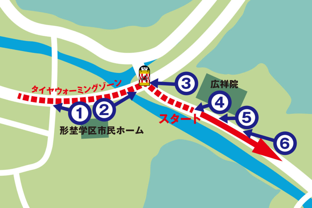 - スタート前のタイヤウォーミングゾーン!